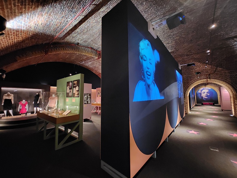 The Marilyn exhibition in Örebro is a premiere in Sweden. It convinces with over 300 exhibits, including original objects from Monroe's estate, which have never been presented in European exhibitions before. The room-in-room concept chosen for that special location is elegantly designed and divided into 15 sections on 2 floors. The exhibition is complemented by a cinema with biographical footage, various projectors, flat screens with video and slideshows as well as touch screens for interactions with visitors. When designing and implementing the exhibition, information on protection against infection with the Covid 19 virus was taken into account.